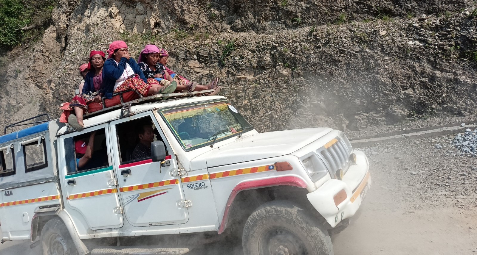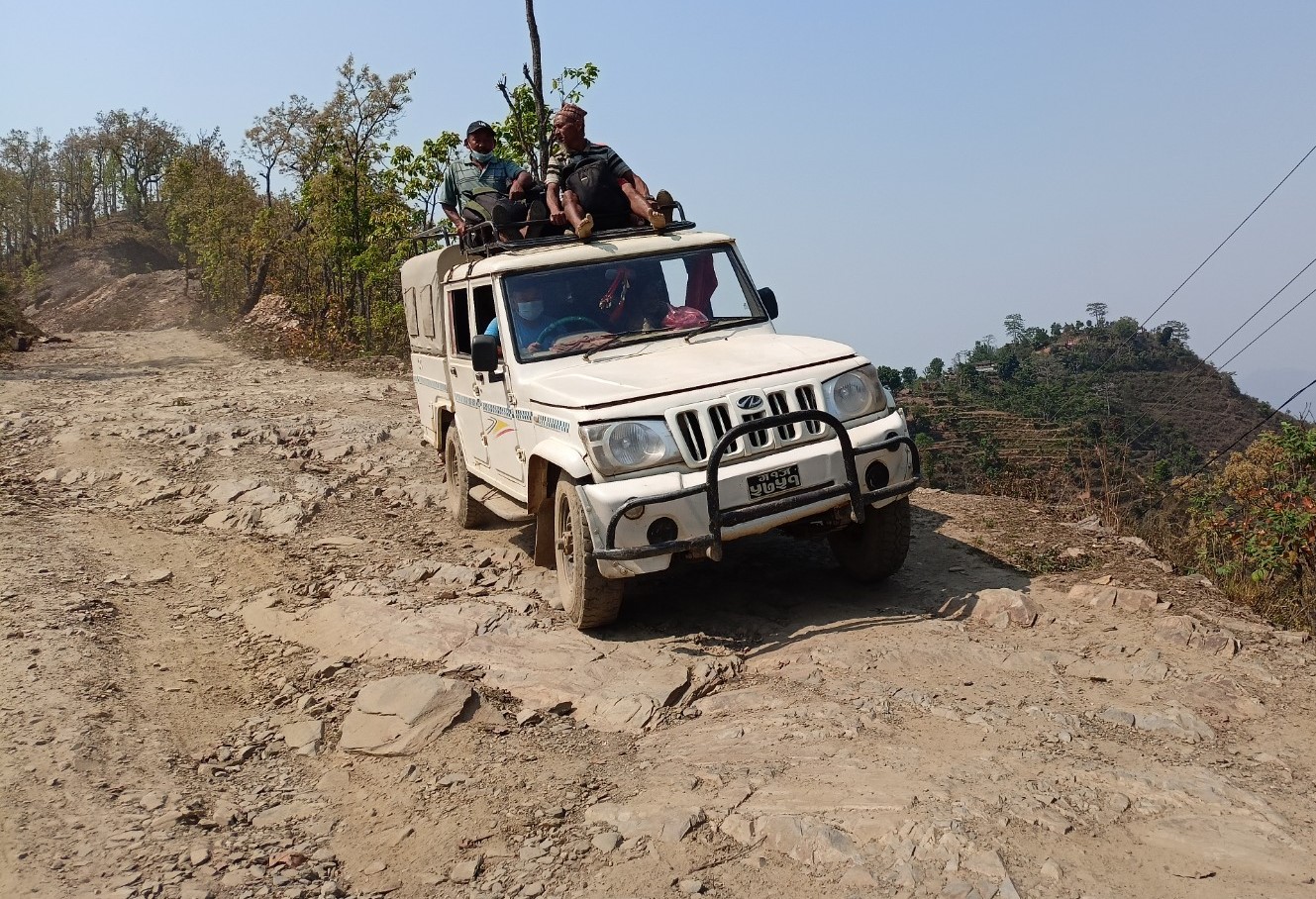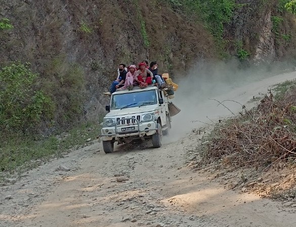 रिसिङ गाउँपालिकाको झापुटारबाट उक्त गाउँपालिकाको रिसिङ, काहुँ, भिरकोट, राम्जाकोट लगायतका क्षेत्रमा जाने जिपमा बुधबार जोखिमपुर्ण यात्रागर्दै यात्रुहरु ।