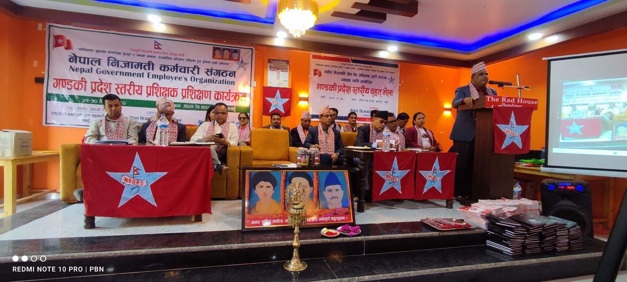 नेपाल निजामती कर्मचारी संगठन गन्डकी प्रदेश कार्य समितिको आयोजनामा बन्दिपुरमा प्रशिक्षण कार्यक्रम शनिबार सम्पन्न भयो । नेपाल निजामती कर्मचारी संगठन गन्डकी प्रदेश कार्य समितिका अध्यक्ष अशोक खनालको अध्यक्षतामा सम्पन्न सो प्रशिक्षणको संगठनका केन्द्रीय अध्यक्ष लेखनाथ कोईरालाले उद्घाटन गरेका थिए ।