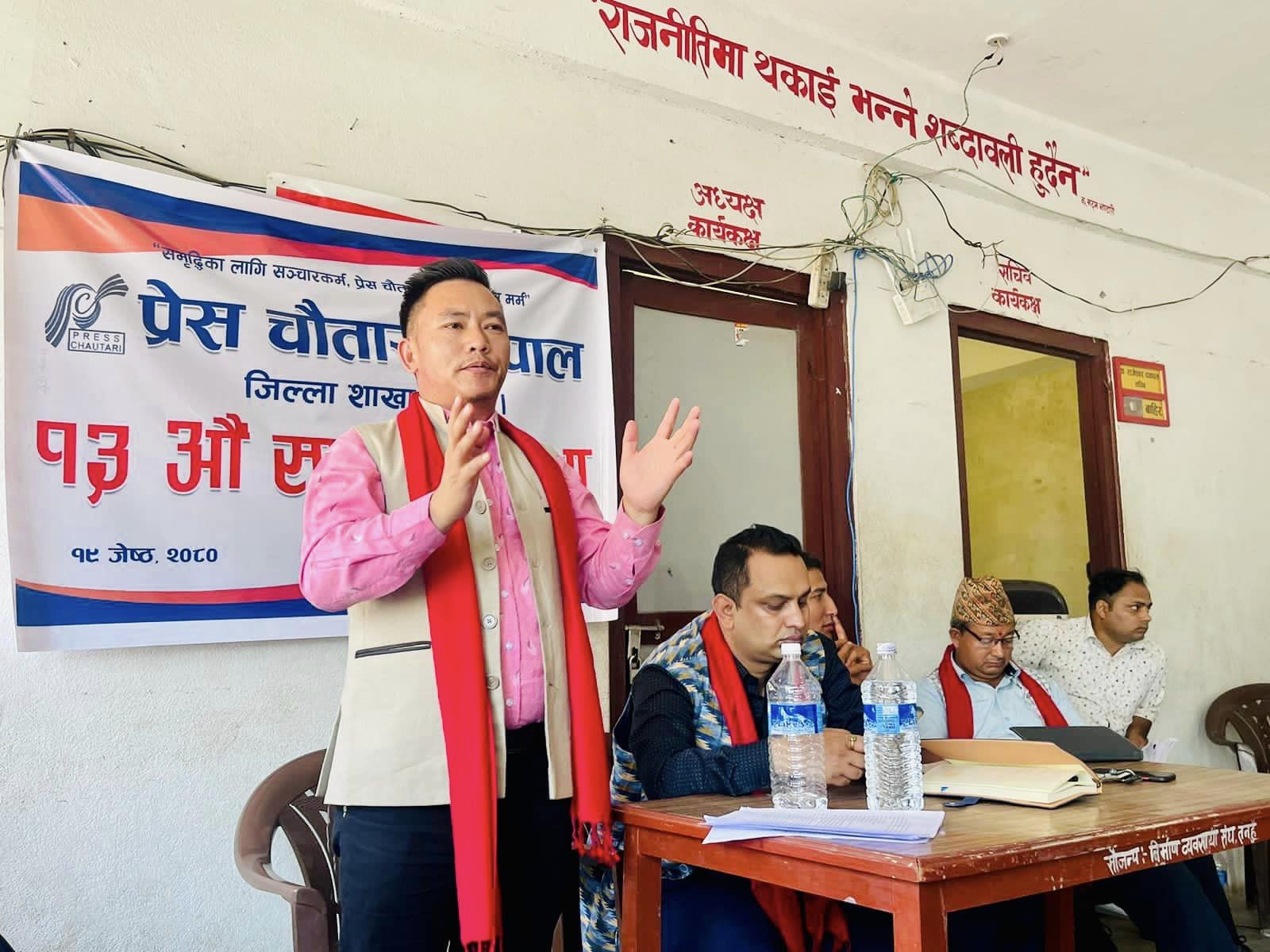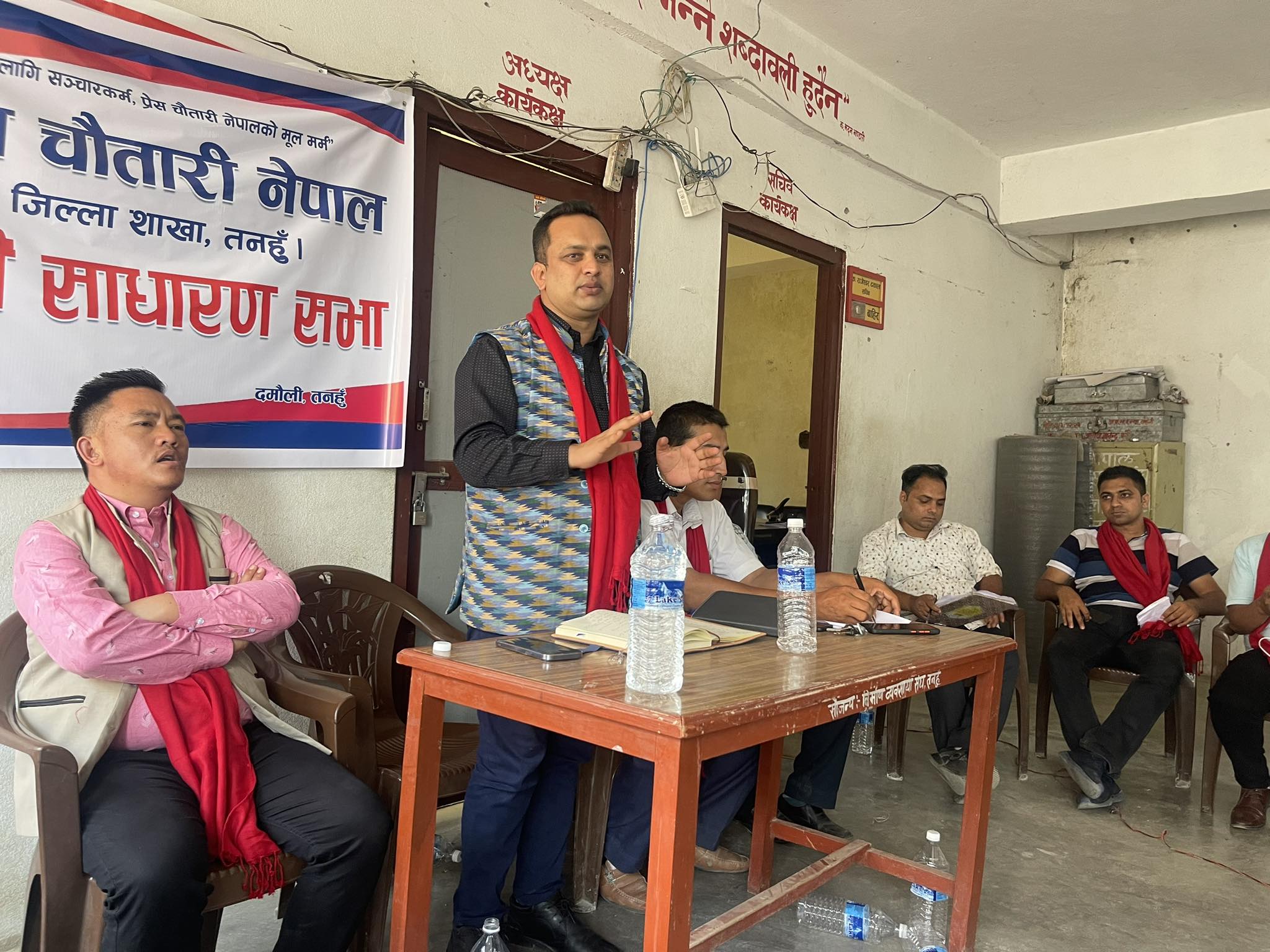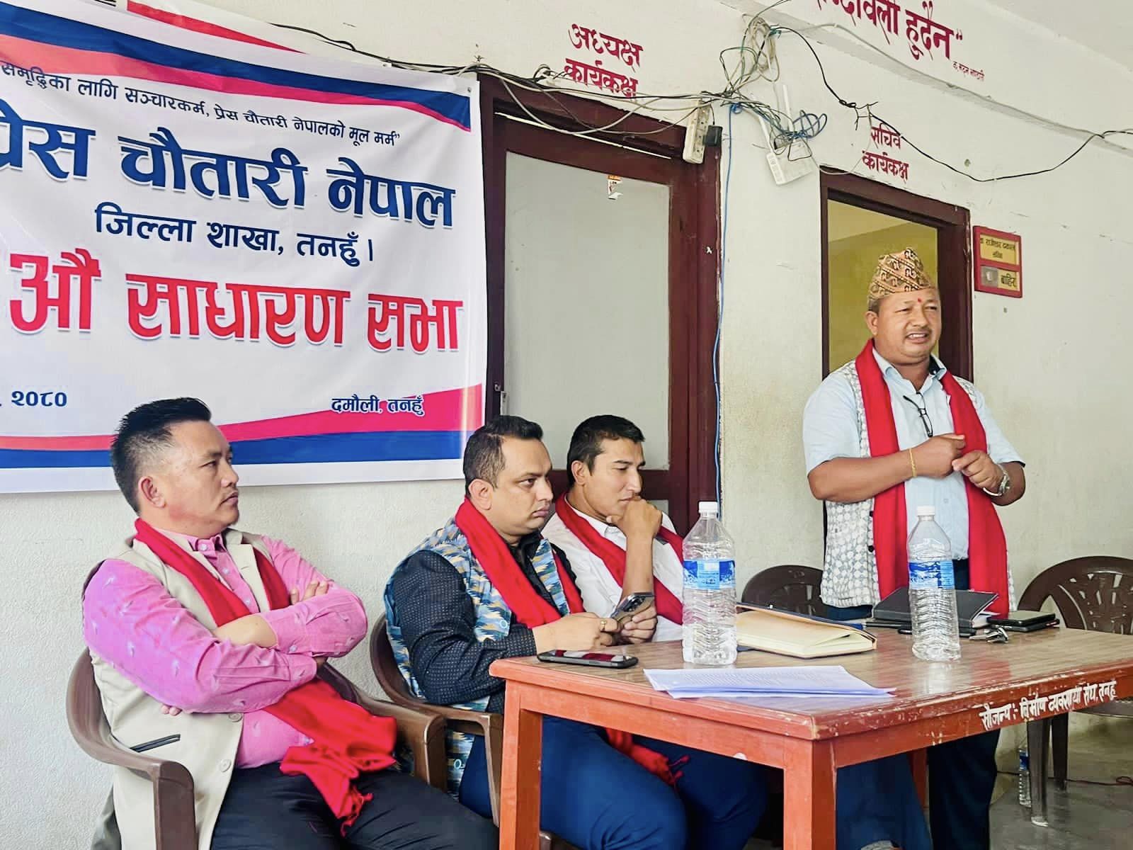 प्रेस चौतारी तनहुँका अध्यक्ष राजकुमार श्रेष्ठको अध्यक्षतामा सम्पन्न सो साधारणसभामा प्रेस चौतारी नेपालका उपाध्यक्ष गणेश पाण्डे, महासचिव हिरामान लामा, नेकपा एमाले तनहुँका अध्यक्ष श्रीप्रसाद श्रेष्ठ, उपाध्यक्ष हरिराज कंडेल, नेकपा एमालेका केन्द्रिय सल्लाहाकार एवं प्रेस स्वतन्त्रता सेनानी विश्वबन्धु भण्डारी, प्रेस चौतारी नेपालका केन्द्रिय सदस्य प्रकाशचन्द्र भट्टराई, प्रेस चौतारीका पुर्व केन्द्रिय सदस्य प्रेमप्रसाद पौडेल, पुरस्कृत व्यक्तित्व प्रेस चौतारी नेपालका निर्वाचन आयोगका सदस्य नारयण खड्का, प्रेस चौतारी नेपाल गन्डकीका महासचिव आश गुरुङ, कोषाध्यक्ष भविश्वर पाण्डे लगायतले मन्तव्य राखेका थिए ।