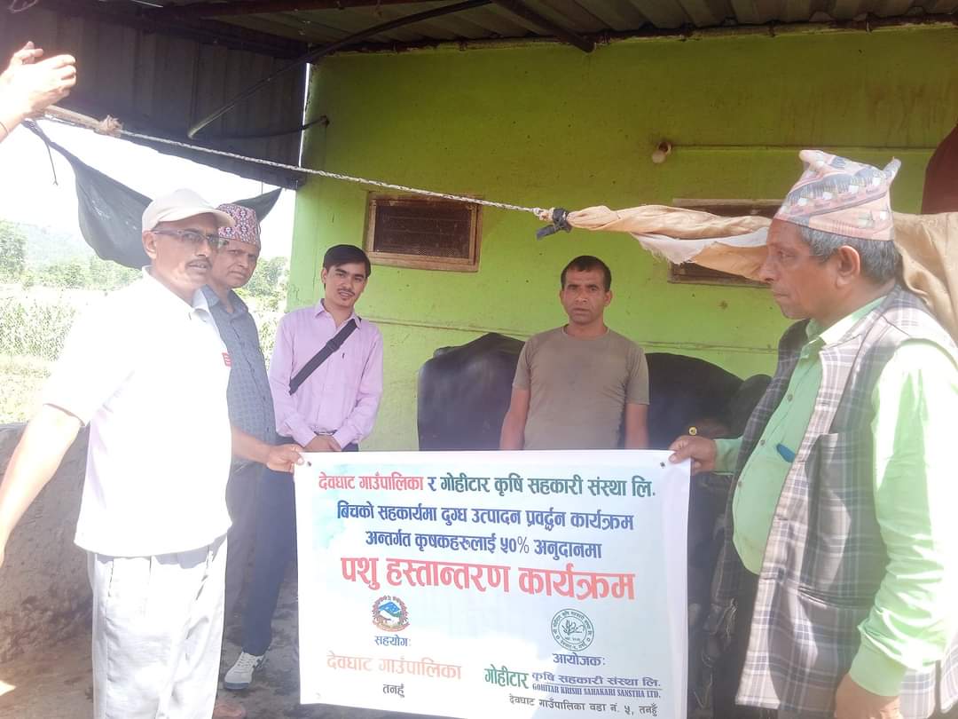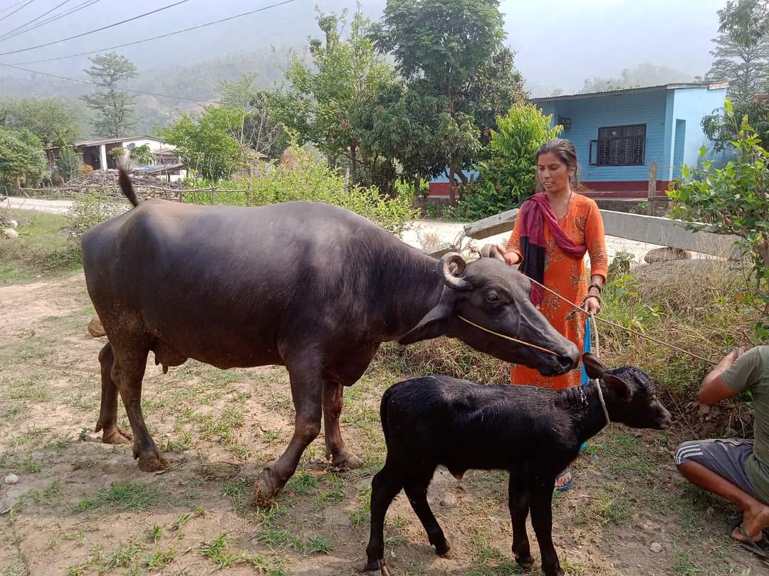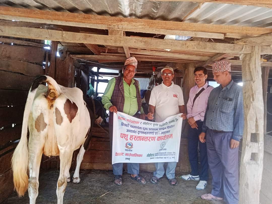 सो अवसरमा गाउँपालिकाको ५० प्रतिशत अनुदानमा ८ वटा भैंसी र २ वटा गाई कृषकहरुलाई हस्तान्तरण गरिएको थियो ।