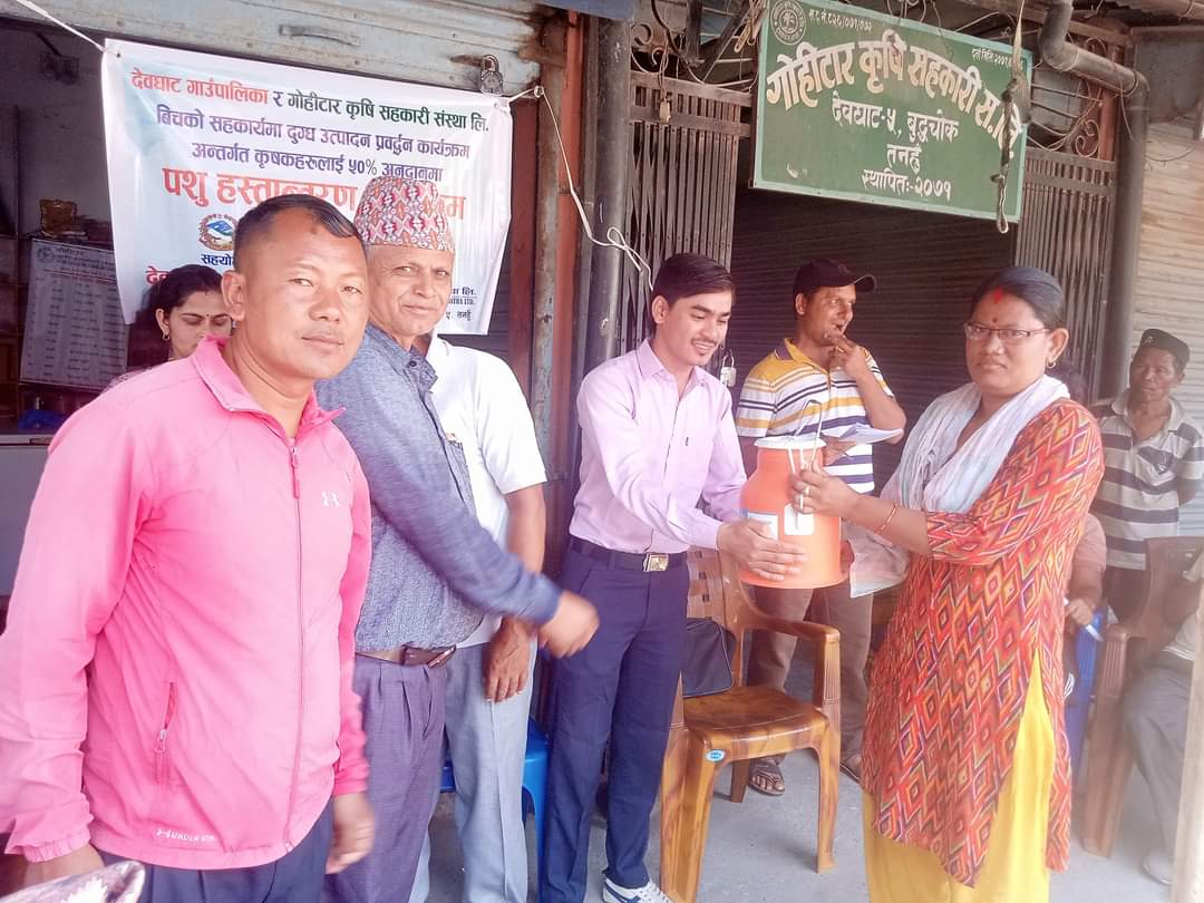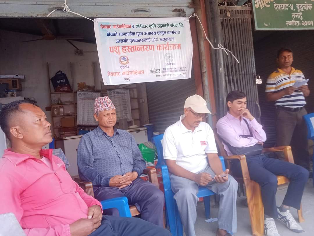 गोहीटार कृषि सहकारी संस्थाका अध्यक्ष विष्णु प्रसाद सुवेदीको अध्यक्षतामा आयोजित कार्यक्रममा देवघाट गाउपलिका वडा न ५ का वडा अध्यक्ष पुर्णबहादुर कुवँर, देवघाट गाउँपालिकाका पशुपन्क्षी शाखाका प्रमुख दिपक सिंह धामी लगायतले मन्तव्य राखेका थिए ।