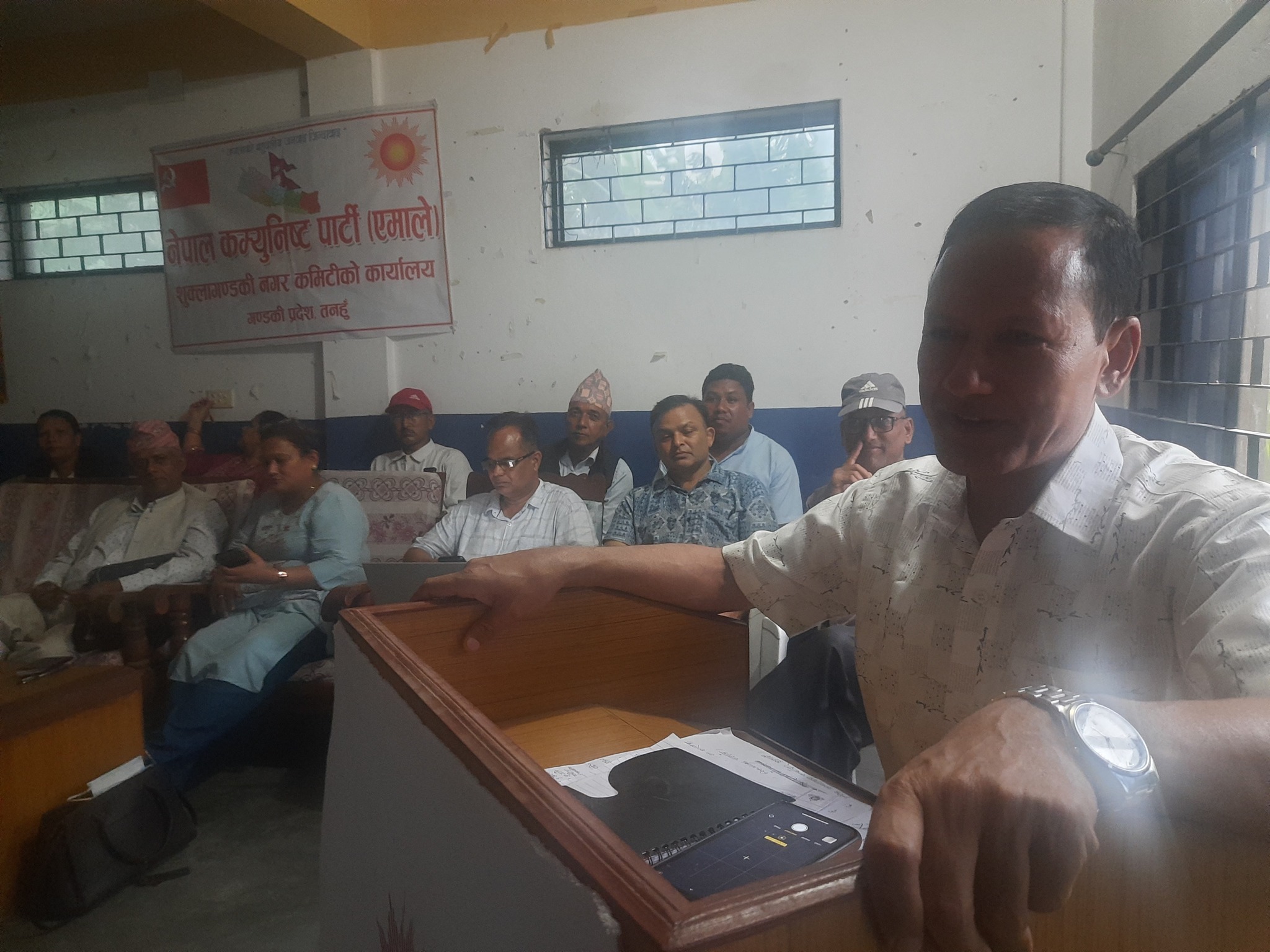 सो बैठकमा केन्द्रीय सदस्य सविता रसाईली, गण्डकी प्रदेश कमिटीका अध्यक्ष नवराज शर्मा, सचिब धनञ्जय दवाडी, तनहुँ जिल्ला कमिटी सचिव तथा नगर ईञ्चार्ज राजेश्वर ढकाल, जिल्ला उपसचिव तथा स्थानीय पालिका दलका नेता खिम कुमाल लगायतका नेताहरूले पार्टी आन्दोलनमा जनप्रतिनिधिको भुमिका र कार्यभार साथै कार्यकर्ता दायित्व लगायतका विषयमा प्रशिक्षणात्मक मन्तव्य राखेका थिए । सो बैठक नगर सचिव रघुनाथ पौडेलले सञ्चालन र स्वागत उपाध्यक्ष इन्द्र गुरुङले गरेका थिए ।