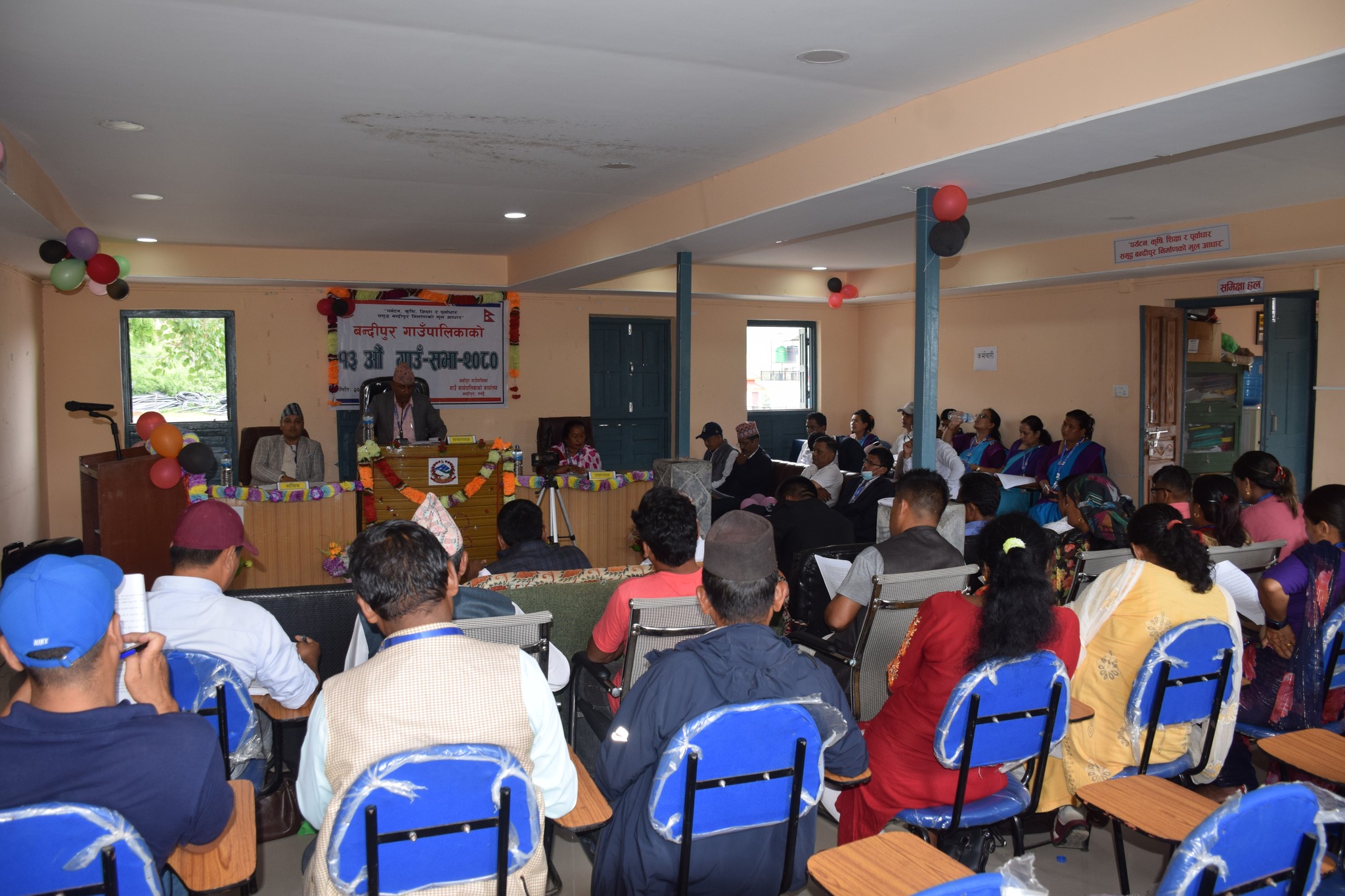 यसैगरि आगामी वर्षभित्र सम्पन्न गर्ने गरि बहुवर्षिय योजनाहरु सम्पन्न गर्ने, बन्दिपुरका सबै घरधुरीमा आधारभुत खानेपानीको पहुँच विस्तार गर्दै स्वच्छ र सफा खानेपानीको सुविधा सबै नागरिकको घर घरमा पु¥याउने, पालिका भित्रका सबै सडकहरुको स्तरोन्नती गर्दै १२ महिना नै सडक सन्चालन हुने व्यवस्था मिलाउने, आवश्यक पुर्वाधारका संरचना निर्माण गरि पुर्वाधार सेवाको विस्तार गर्ने, पर्यटनलाई गाउँपालिकाको मुख्य आयको रुपमा स्थापित गर्ने तथा विभिन्न जातजाती धर्म, कला र संस्कृतीको संरक्षण गर्दै महिला, बालबालिका, जेष्ठ नागरिक, आदिवासी जनजाती, अल्पसंख्यक, अपाङ्ग तथा पिछडिएको वर्ग तथा अािर्थक रुपमा कमजोर वर्गको उत्थान गर्दै सामाजिक न्याय र समतामुलक समाजको निर्माण गर्ने मुख्य लक्ष्य लिईएको गाउँपालिकाका अध्यक्ष सुरेन्द्र थापाले बताए ।