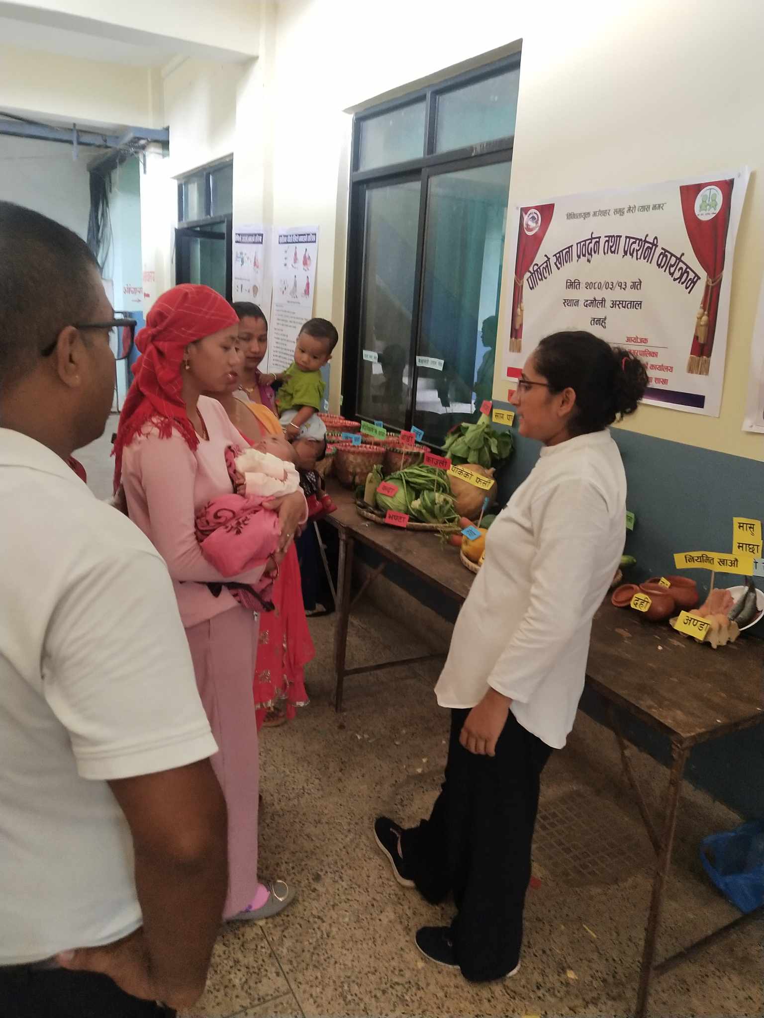 स्तनपान गराउने, सुत्केरी र गर्भवती महिलालाई पोलिस नगरेको चामल, अण्डा, गेडागुडी तथा क्वाँटी, शुद्ध तोरीको तेल, हरियो तरकारी तथा सागपात, फलफुल, सर्वोत्तम पिठो, ज्वानोलगायतका खाद्य सामाग्री प्रर्दशनीमा राखिएको थियो ।