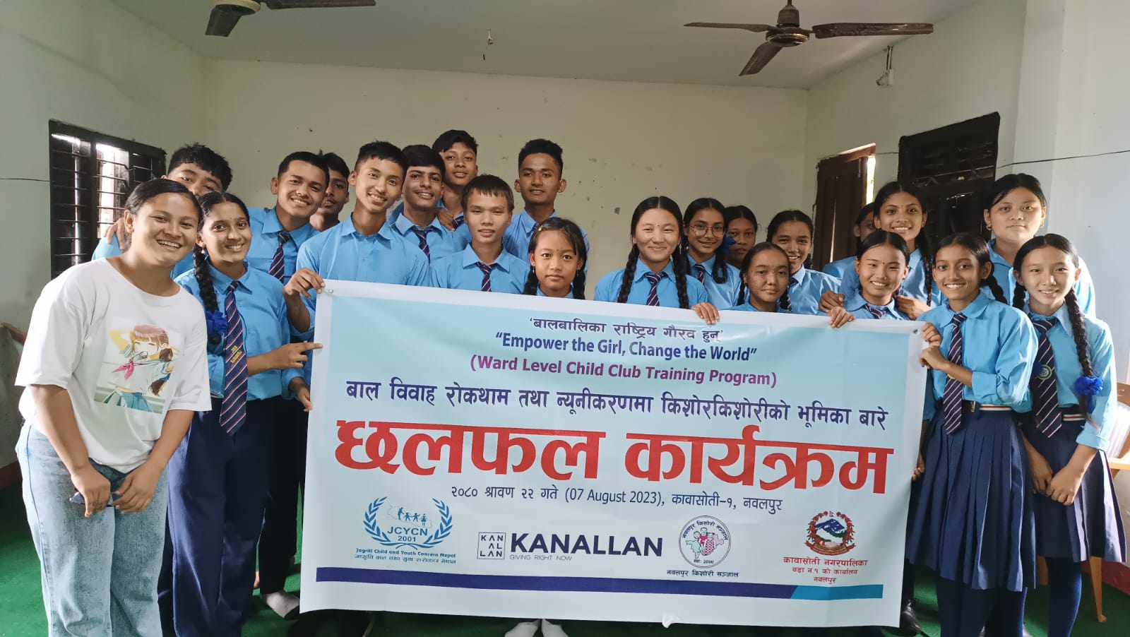 सो अवसरमा कावासोती नपा–१ को जनकल्याण माध्यमिक बिद्यालयका बालबालिकाहरुलाई बाल बिवाहको असर, बाल बिवाह हुनुको कारण, बाल बिवाह रोक्ने उपाय र कानुनी प्रावधानको बारेमा सचेत गराईएको थियो ।
