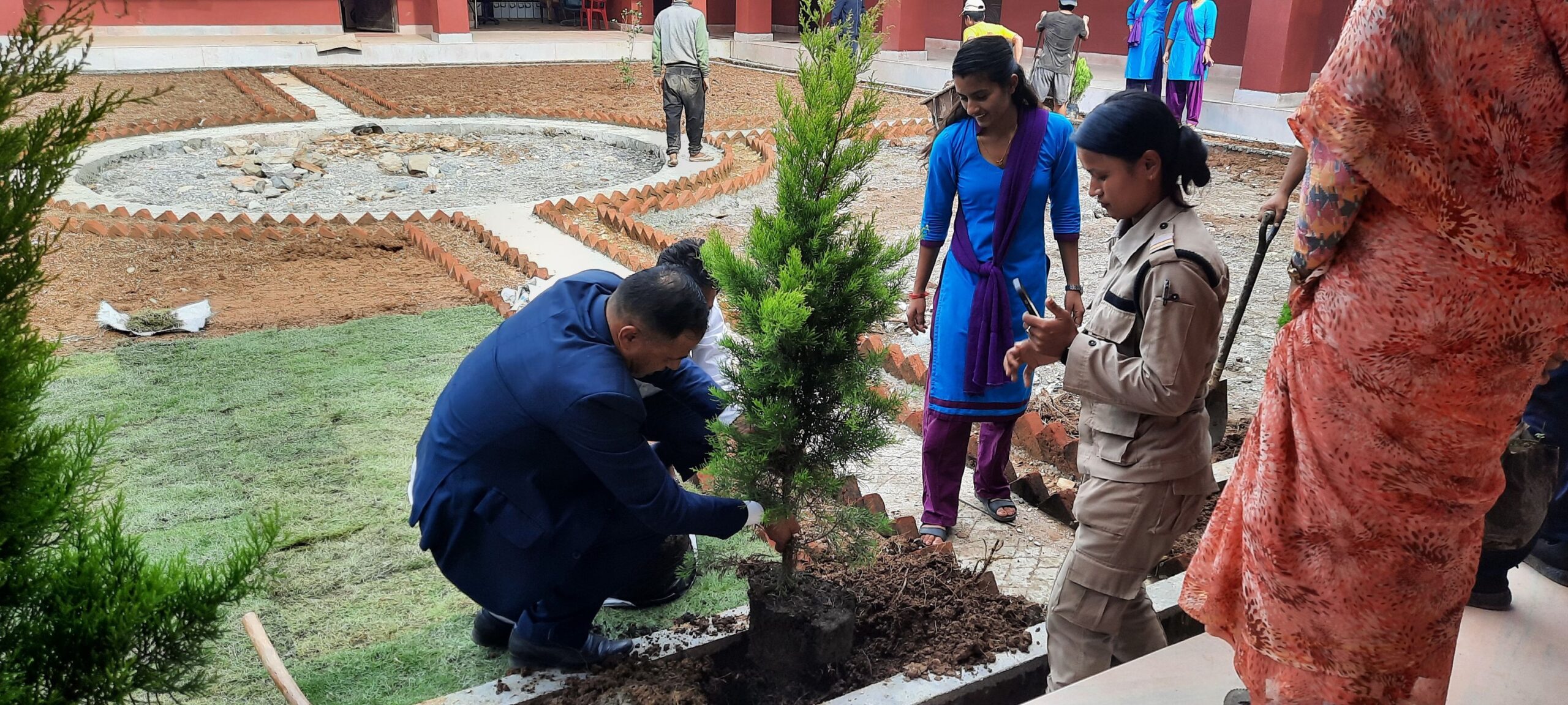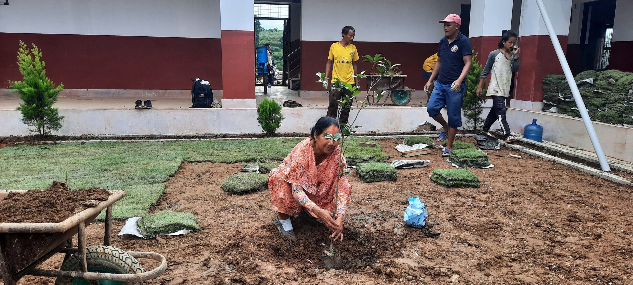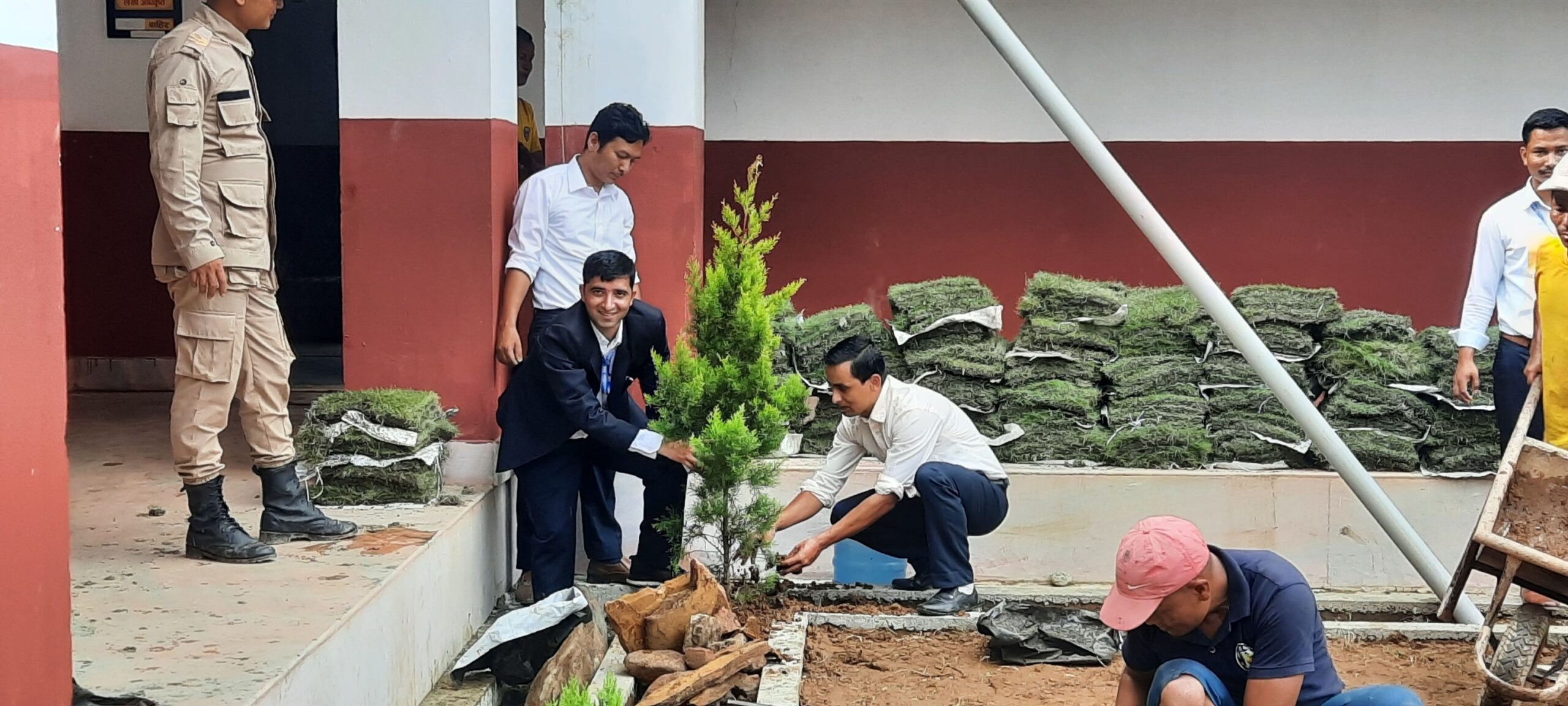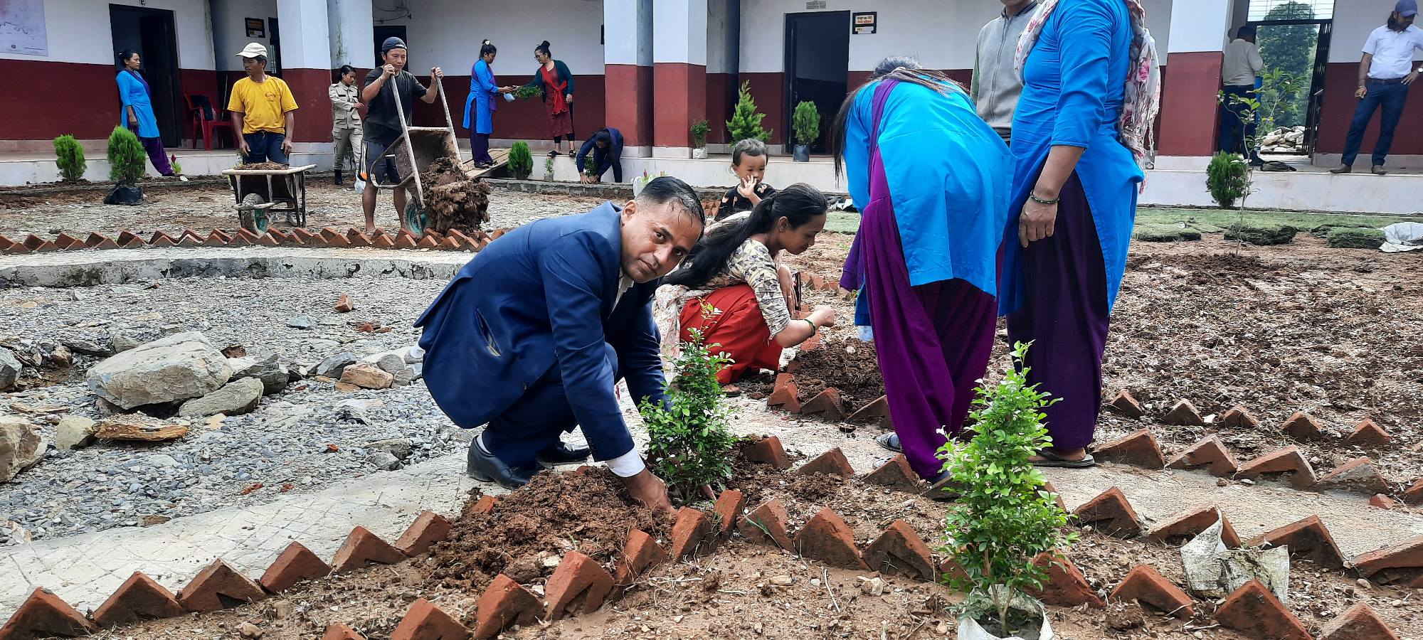 जनप्रतिनिधि र कर्मचारीहरुले गाउँपालिका कार्यालय परिसरमा चाईनिज दुबो सहित फुलका विरुवा रोपेर आकर्षक स्वरुपको बनाउँदै ।