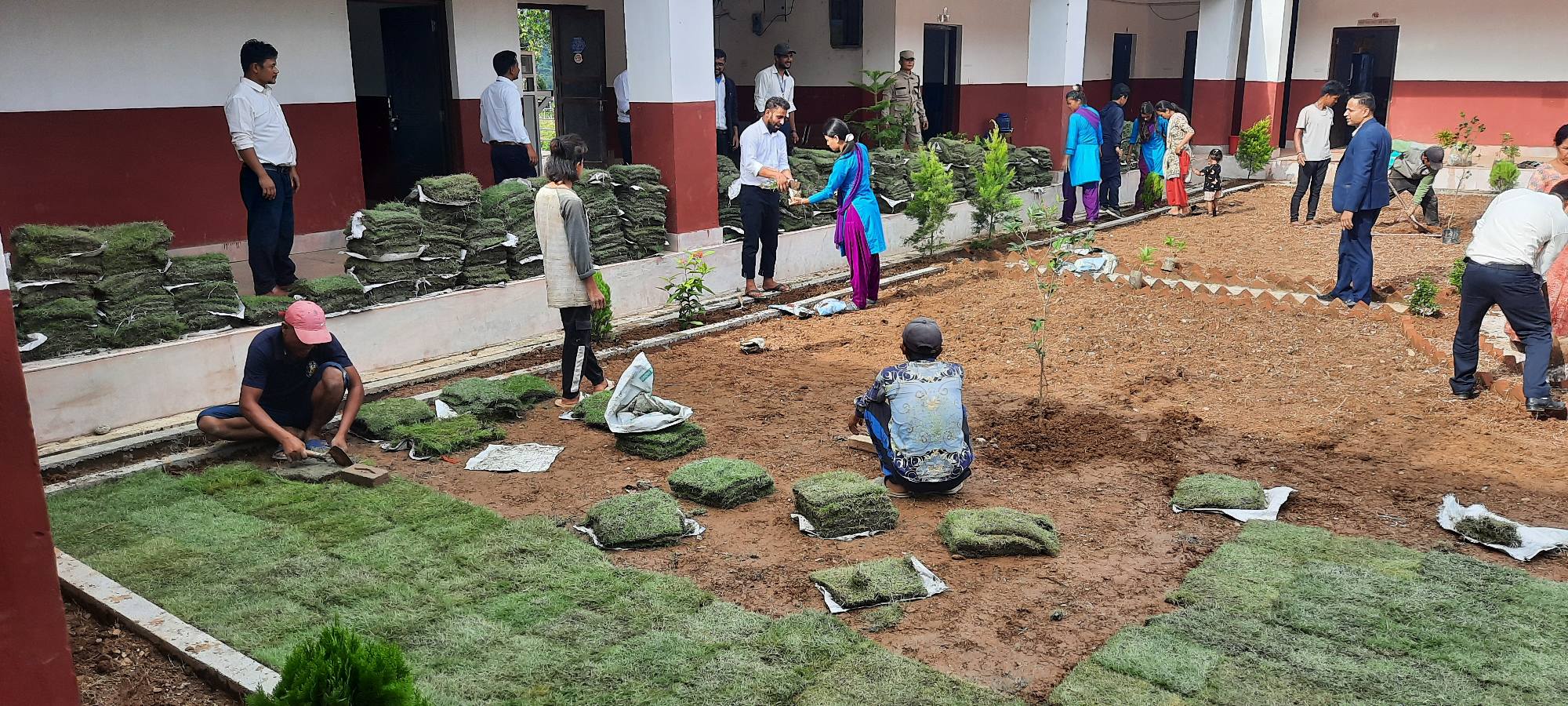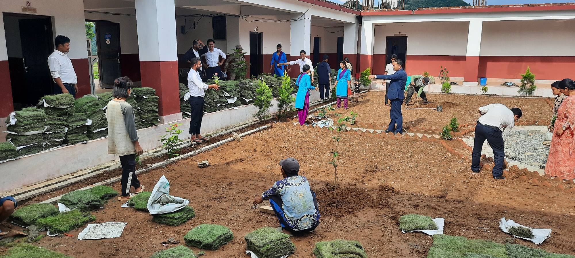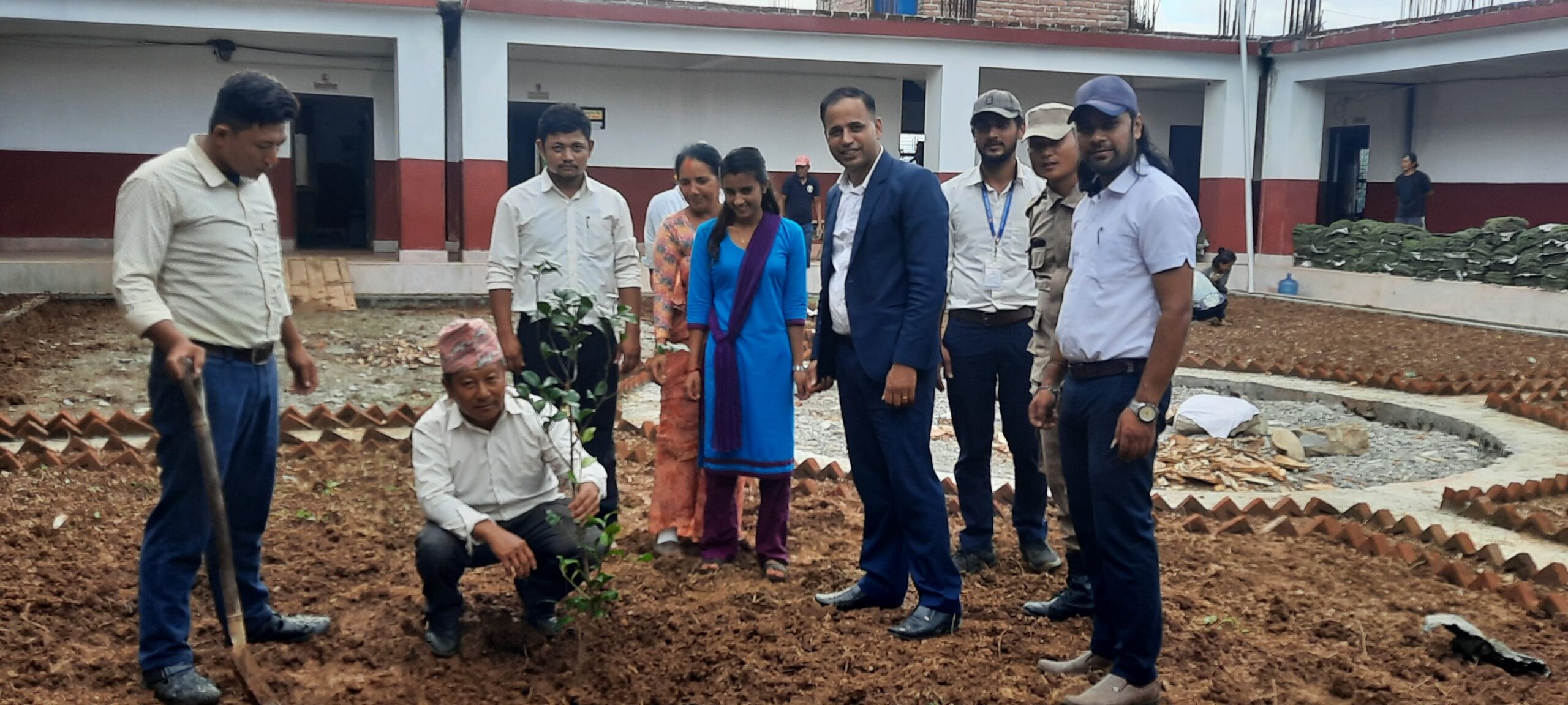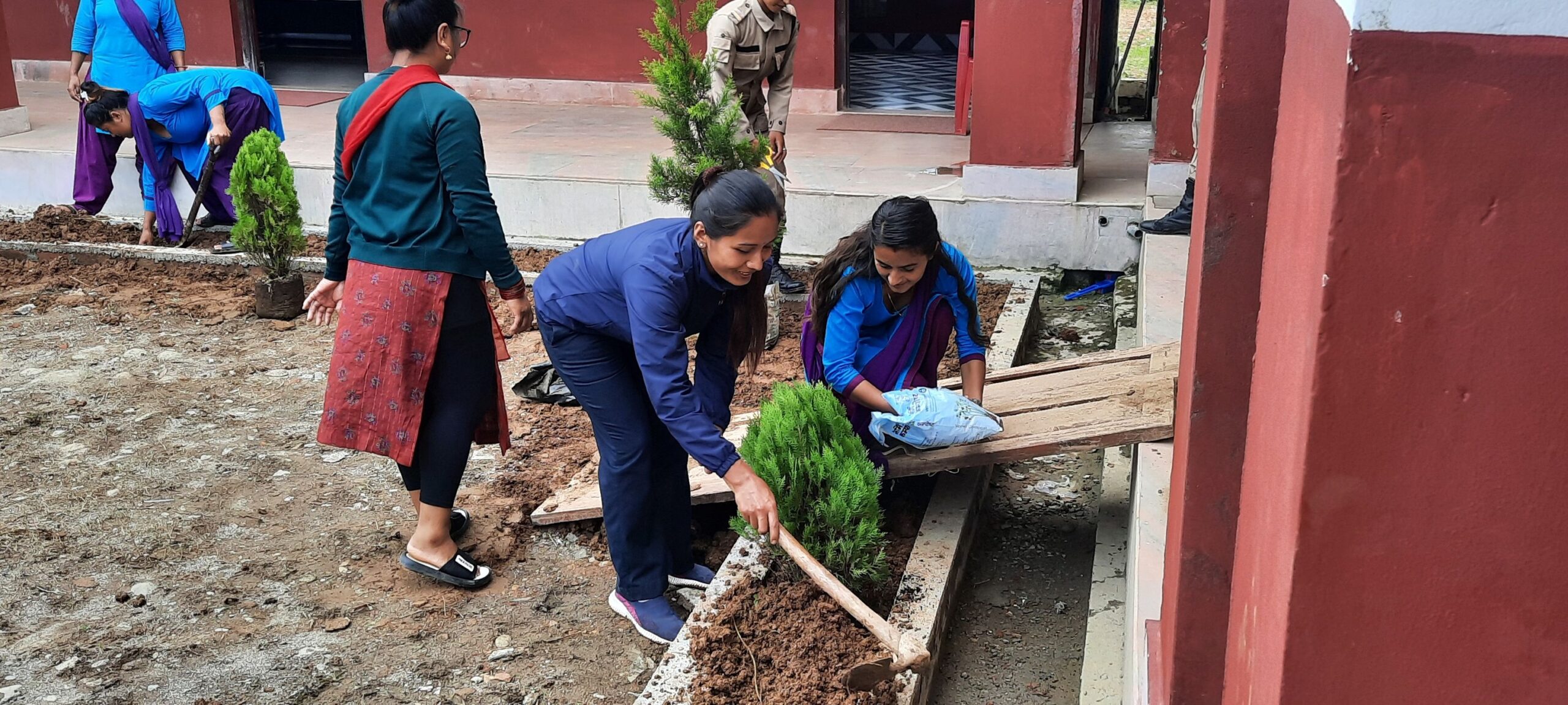 जनप्रतिनिधि र कर्मचारीहरुले गाउँपालिका कार्यालय परिसरमा चाईनिज दुबो सहित फुलका विरुवा रोपेर आकर्षक स्वरुपको बनाउँदै ।