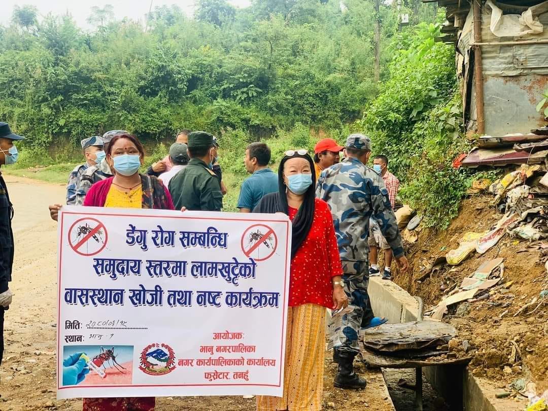 तनहुँ जिल्ला डेंगु रोगको हटस्पट बन्दै गएको र भानु नगरपालिकामा पनि डेंगुको विरामीहरु बढ्न थालेपनि उक्त रोग नियन्त्रणका लागि सोमबारबाट अभियान सुरु गरिएको भानु नगरपालिकाका स्वास्थ्य शाखाका प्रमुख ऐश्वर्यचन्द्र भट्टराईले बताए । सोमबार वडा नम्बर १ को डुम्रे साजबोटे क्षेत्रबाट अभियान सन्चालन गरिएको भानु नगरपालिकाका प्रमुख आनन्दराज त्रिपाठीले बताए ।