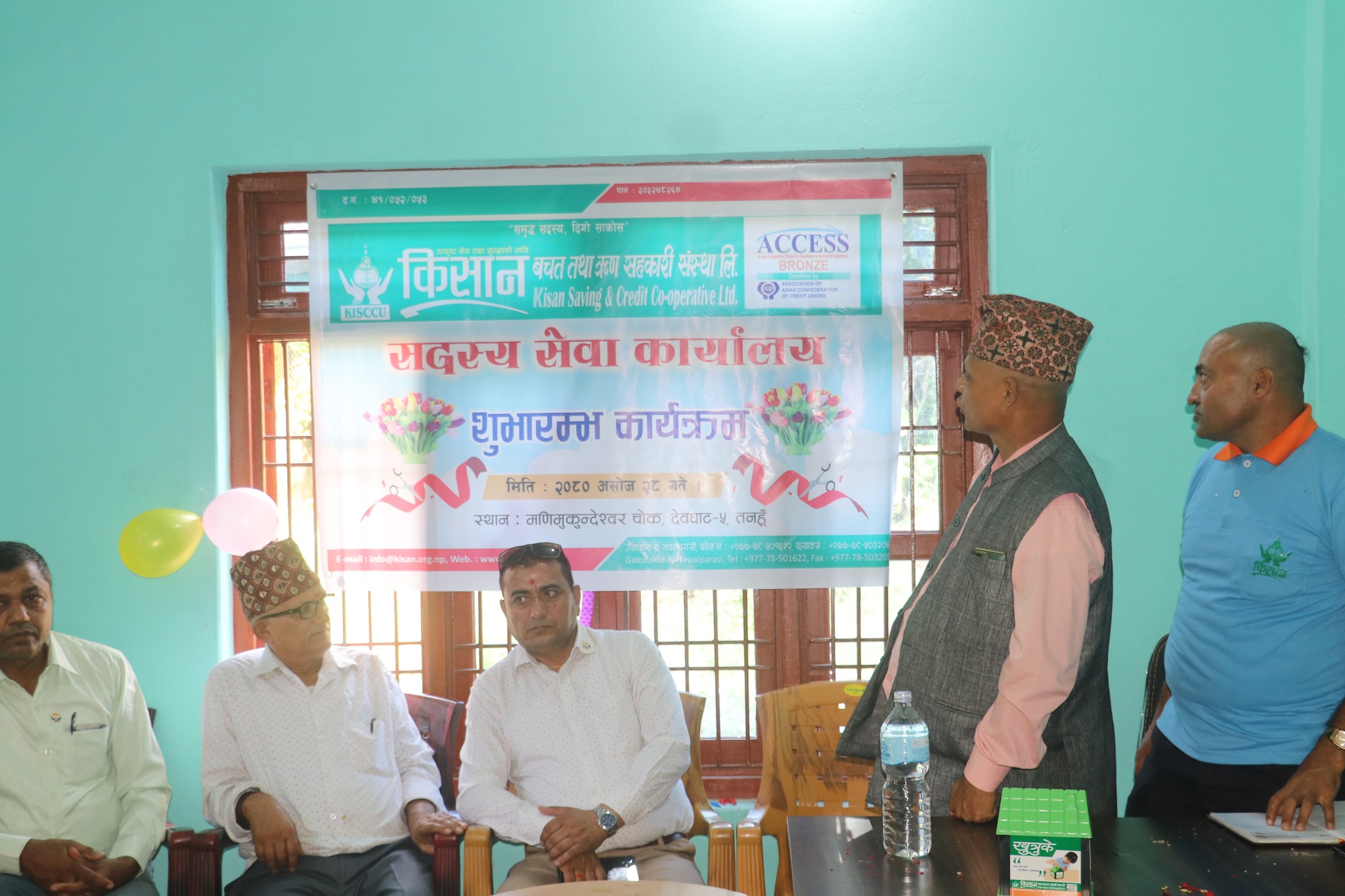 सहकारी संस्थाका अध्यक्ष ऋषिराम सुवेदीको अध्यक्षतामा सम्पन्न सो कार्यक्रमको सन्चालन किसान साकोसका सचिव सरस्वती कडेलले गरेकी थिइन् । सो कार्यक्रममा वडा नम्बर–५ सदस्य कमला गुरूङ, बुद्धि बहादुर पाण्डे तथा पूर्व वडा अध्यक्ष याल बहादुर गुरूङ, उद्योग वाणिज्य संघ देवघाट अध्यक्ष रोशन श्रेष्ठ तथा सहकारीका शेयर सदस्यहरुको सहभागीता रहेको थियो ।