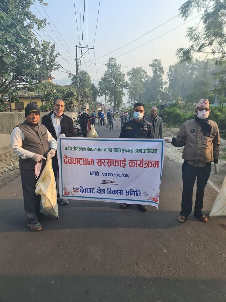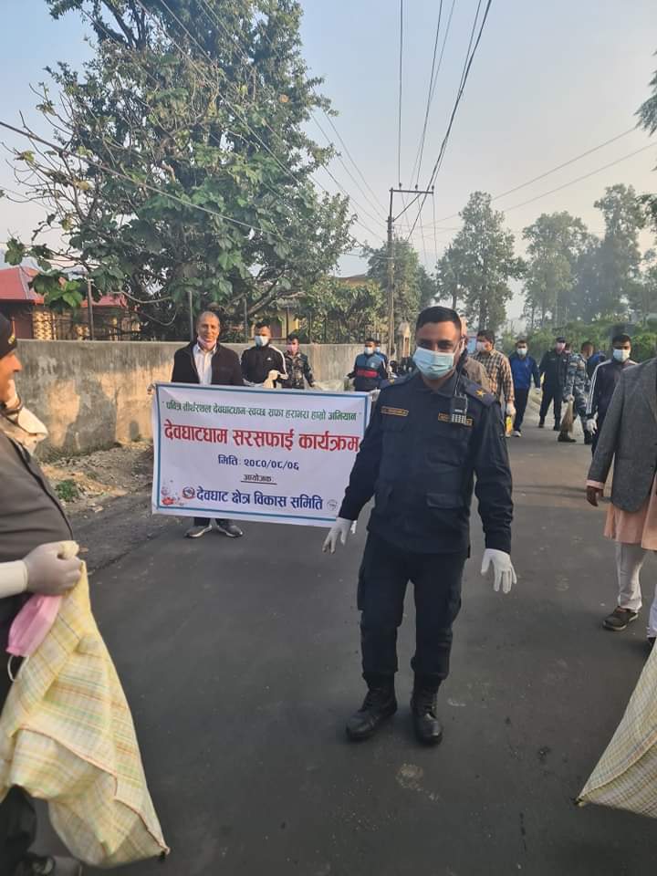 बिहिवार हिन्दुहरुको महान चाड हरिबोधनी एकादशी परेको तथा आगामी शनिबार सन्त महात्माहरुको उपस्थितिमा देवघाटधाम गन्डकी परिक्रमा महोत्सव आयोजना गरिएको हुँदा देवघाट क्षेत्रमा सरसफाइ गरिएको हो । मंगलबार तनहुँ तर्फको भागमा सरसफाइ गरिएको थियो ।