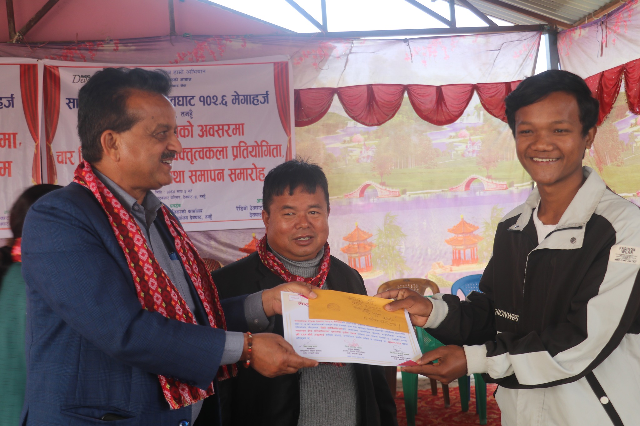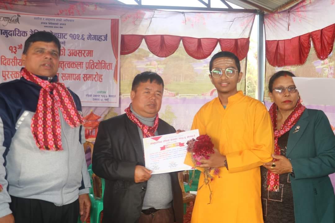सो कार्यक्रममा यस अघि गत पौष २५ गते आयोजित दौड प्रतियोगिताका महिला र पुरुष विजयी धावकहरुलाई र बक्तृत्वकला प्रतियोगिताका विजयी विद्यार्थीहरुलाई देवघाट गाउँपालिकाका अध्यक्ष तिलबहादुर थापा, रेडियोका अध्यक्ष बिजय शर्मा भुषाल लगायतले पुरस्कार प्रदान गरेका थिए ।