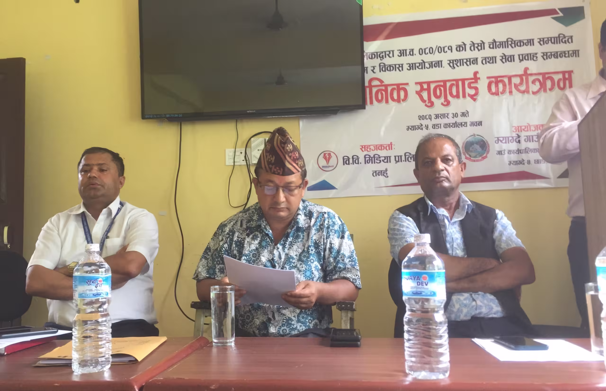 म्याग्दे गाउँपालिका तनहुँको आयोजना तथा वि.वि मिडिया प्रा.लि. दमौली तनहुँको सहजिकरणमा म्याग्दे गाउँपालिकाद्वारा चालु आ.व. २०८०÷०८१ को तेस्रो चौमासिकको सार्वजनिक सुनुवाई कार्यक्रम आइतबार वडा नम्बर ५ को कार्यालयमा सम्पन्न भएको छ ।