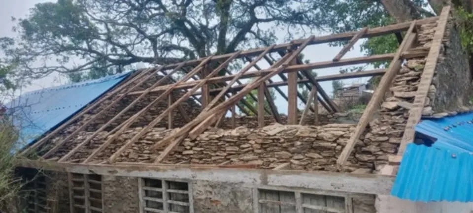 हावाहुरीले देवघाटमा विद्यालयको छाना उडायो