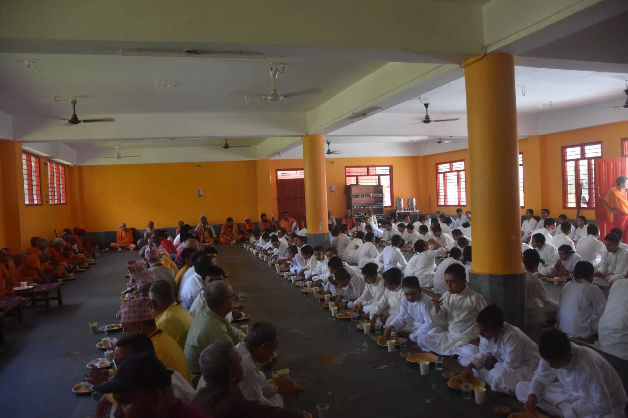 आश्रममा आश्रित साधु–सन्त, भक्तजन, वृद्धवद्धा, वेद वेदाङ्ग विद्यालयका अध्यापक, अध्येता, ब्रह्मचारी बटुकका लागि नित्य भोजन र अन्य अतिथिका लागि दुई छाक) निःशुल्क भोजनको व्यवस्था आश्रमले मिलाएको छ । ३ सय जनाले एकैसाथ भोजन गर्न मिल्ने भोजनालय सञ्चालनमा छ । स्थायी अन्न क्षेत्रलाई दिगो सञ्चालन गर्न दानदाता महानुभावहरूले आफनो जन्मदिन अथवा पितृहरूको तिथिमा वा कोही कसैको नाममा अक्षयकोषमा न्युनतम १५ हजार रुपैयाँसम्म रकम जम्मा गन सक्ने व्यवस्था रहेको छ । सो को व्याजबाट अन्नक्षेत्र नियमित रुपमा सञ्चालन भएको छ । दाताहरूको पितृको सम्झनामा वा विशेष दिनको उपलक्ष्यमा विशेष भण्डाराको समेत व्यवस्था गरिन्छ । पितृहरूको तिथिका दिन प्रातः व्राह्मणद्रारा नदी किनारमा संकल्प गरी तर्पण गर्ने र जन्मदिनको उपलक्ष्यमा शिवालयको नियमित पूजामा संकल्प सहित रुद्राभिषेक गर्ने गरिन्छ ।
