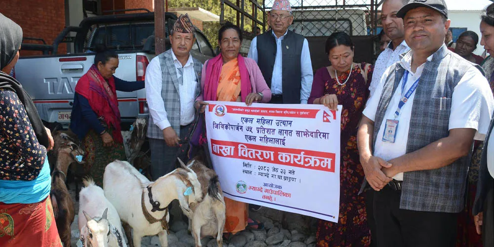 म्याग्देका सात वटा वडाबाट चार/चार एकल महिला छनोट गरी प्रत्येकलाई एक/एक वटाका दरले ७५ प्रतिशत अनुदानमा बाख्रा वितरण गरिएको गाउँपालिकाले जनाएको छ ।