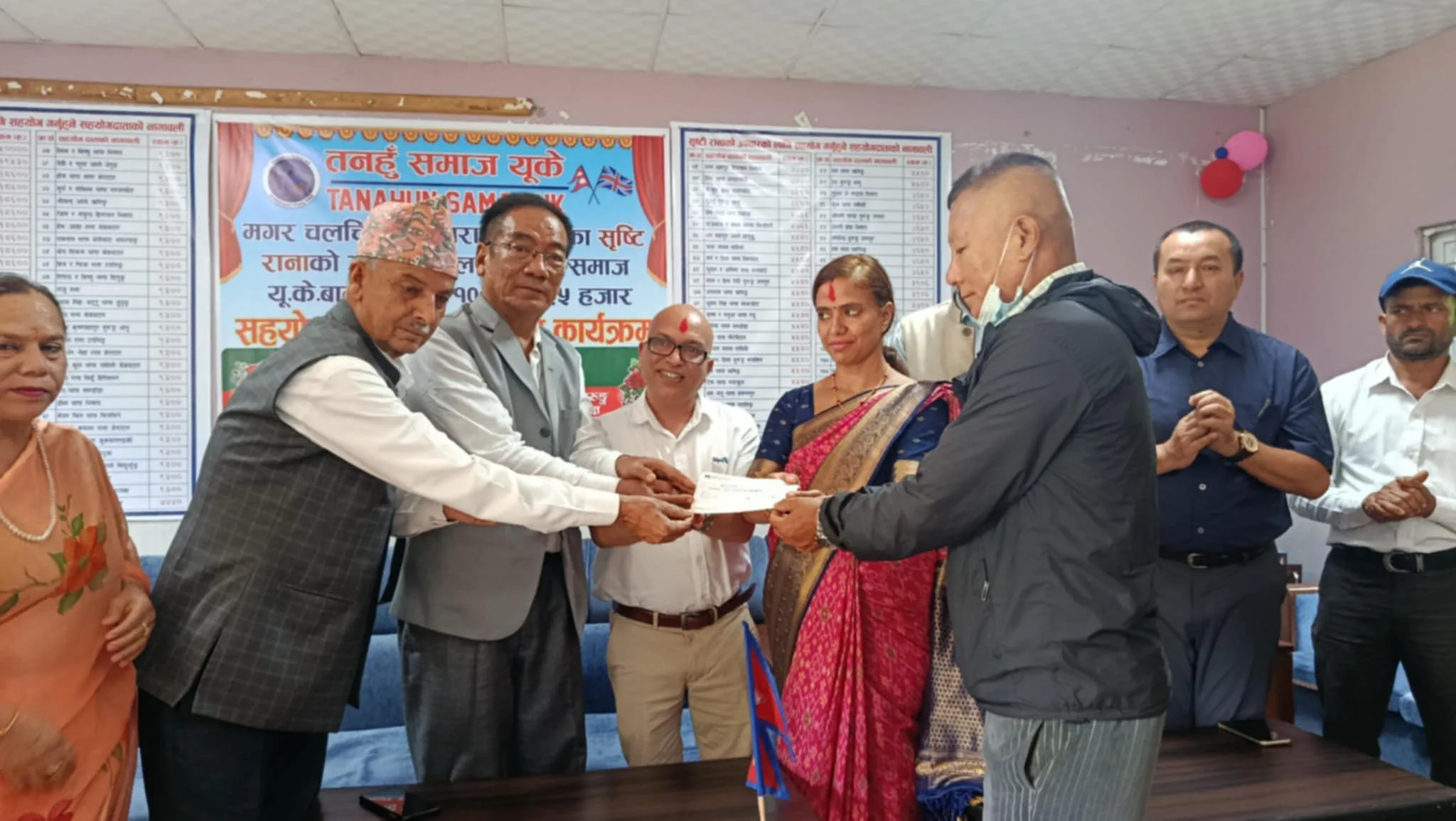 भिमाद नगरपालिकाको सभाहलमा सम्पन्न कार्यक्रममा गण्डकी प्रदेशका पूर्व अर्थमन्त्री तथा प्रदेशसभा सदस्य माननीय जीत प्रकाश आले, भिमाद नगर प्रमुख दधिराज सुवेदी, तनहुँ समाज यूकेका सचिव शोभा गौतम र कार्यसमिति सदस्य डा. प्रकाश गौतमले संयुक्त रूपमा अभिनेत्री सृष्टि रानाका बुवा दशरथ रानालाई सहयोग रकमको चेक हस्तान्तरण गरेका थिए ।