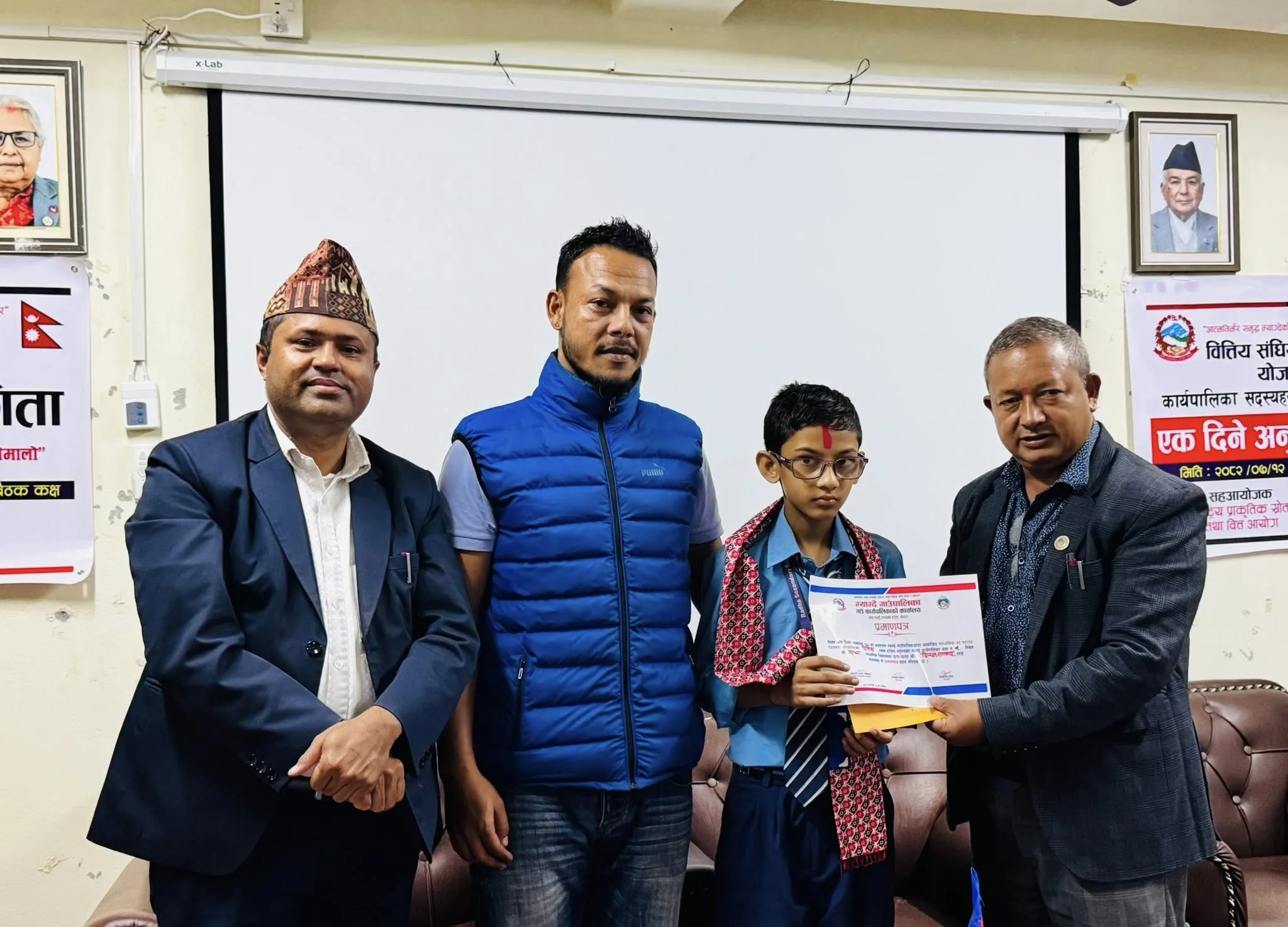 प्रतियोगितामा विजयी विद्यार्थीहरुले म्याग्दे गाउँपालिकाका अध्यक्ष श्रीप्रसाद श्रेष्ठ, प्रमुख प्रशासकीय अधिकृत नारायणप्रसाद अधिकारी, शिक्षा शाखा प्रमुख विष्णु खत्री लगायतले पुरस्कार प्रदान गरेका थिए ।