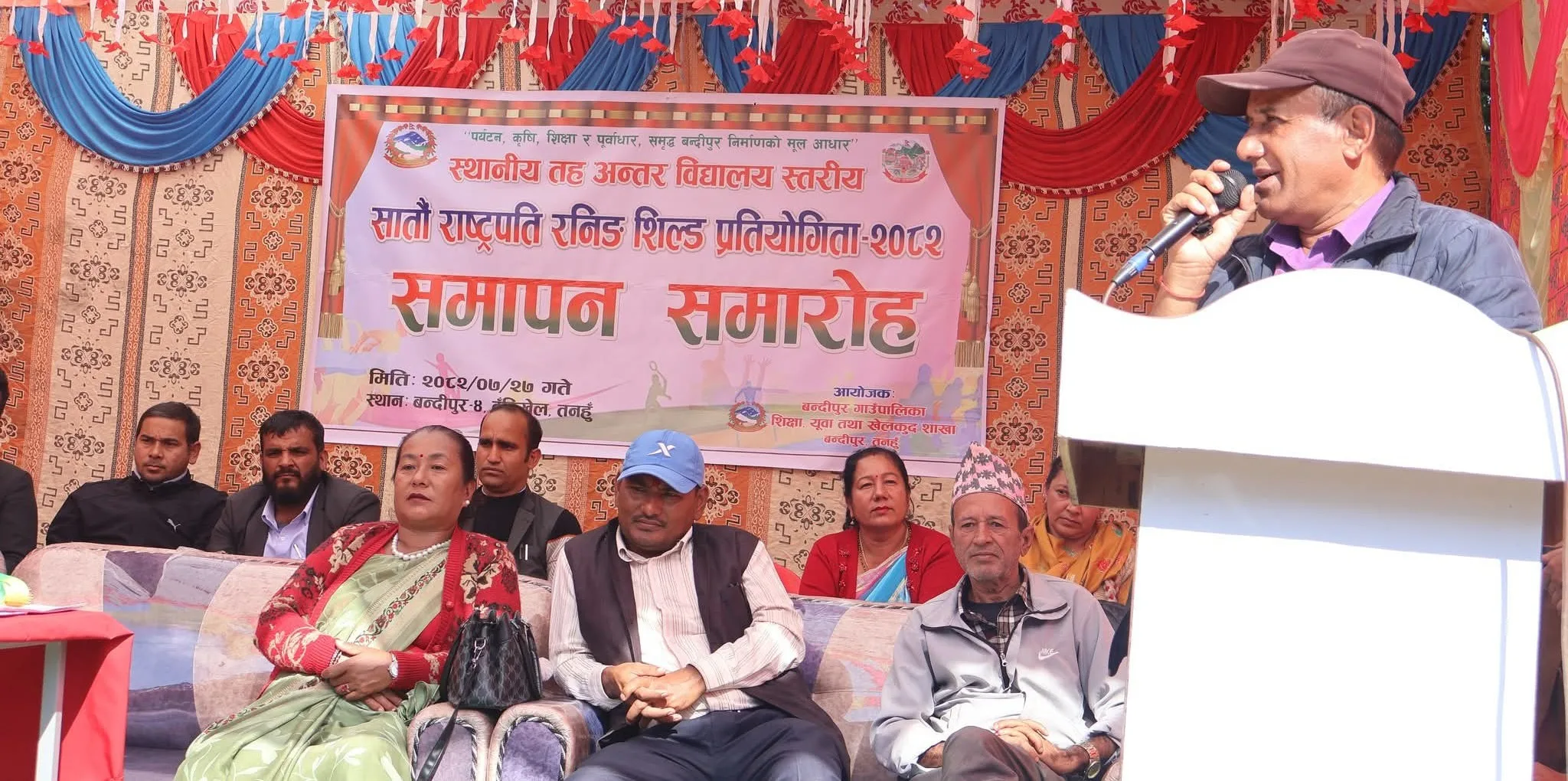 प्रतियोगिताको समापन कार्यक्रमलाई सम्बोधन गर्दै गाउँपालिकाका अध्यक्ष सुरेन्द्रबहादुर थापाले विद्यार्थीहरूमा विकास भएको आत्मविश्वास, अनुशासन, नेतृत्व र खेलभावनाले भविष्यमा बन्दीपुरलाई अझ उज्यालो बनाउने विश्वास व्यक्त गरे ।