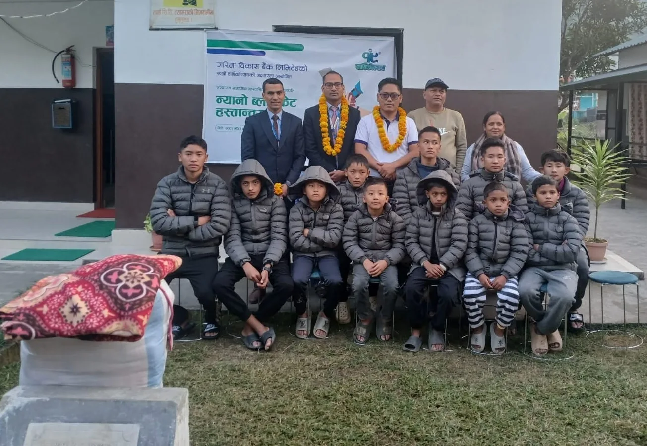 गरिमा विकास बैंक डुम्रे शाखाद्वारा सामाजिक उत्तरदायित्वअन्तर्गत बालगृहमा न्यानो ब्ल्याङ्केट वितरण