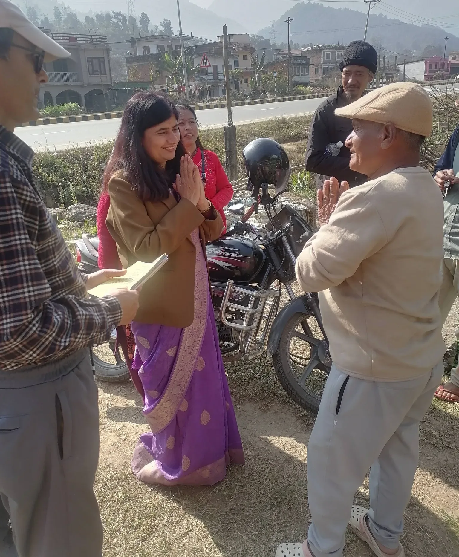 नेकपा एमाले तनहुँ क्षेत्र नम्बर १ का उम्मेदवार भगवती न्यौपानेले बुधबार आबुँखैरेनीका विभिन्न स्थानमा घरदैलो गरिन् । मतदातालाई भेटन न्यौपाने मतदाताको घर घरमा पुगेकी थिइन् ।