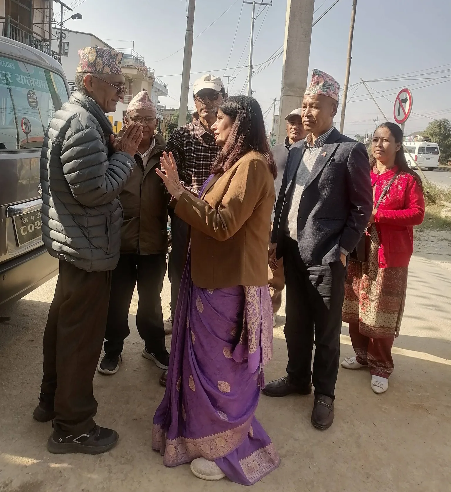 आबुँखैरेनी गाउँपालिकाका नेकपा एमालेका नेताहरुको साथ उम्मेदवार न्यौपानेले मतदातालाई भेटी प्रतिनिधि सभाको निर्वाचनमा सुर्य चिन्हमा मतदान गरि बिजयी गराउन अनुरोध गरिन् । आफु यसै क्षेत्रको छोरी भएको र आबुँखैरेनीको सबै समस्या आफुलाई जानकारी भएको भन्दै यस क्षेत्रका जनताको विकास र समृद्धीको लागि पनि काम गर्ने उनले बताइन् ।