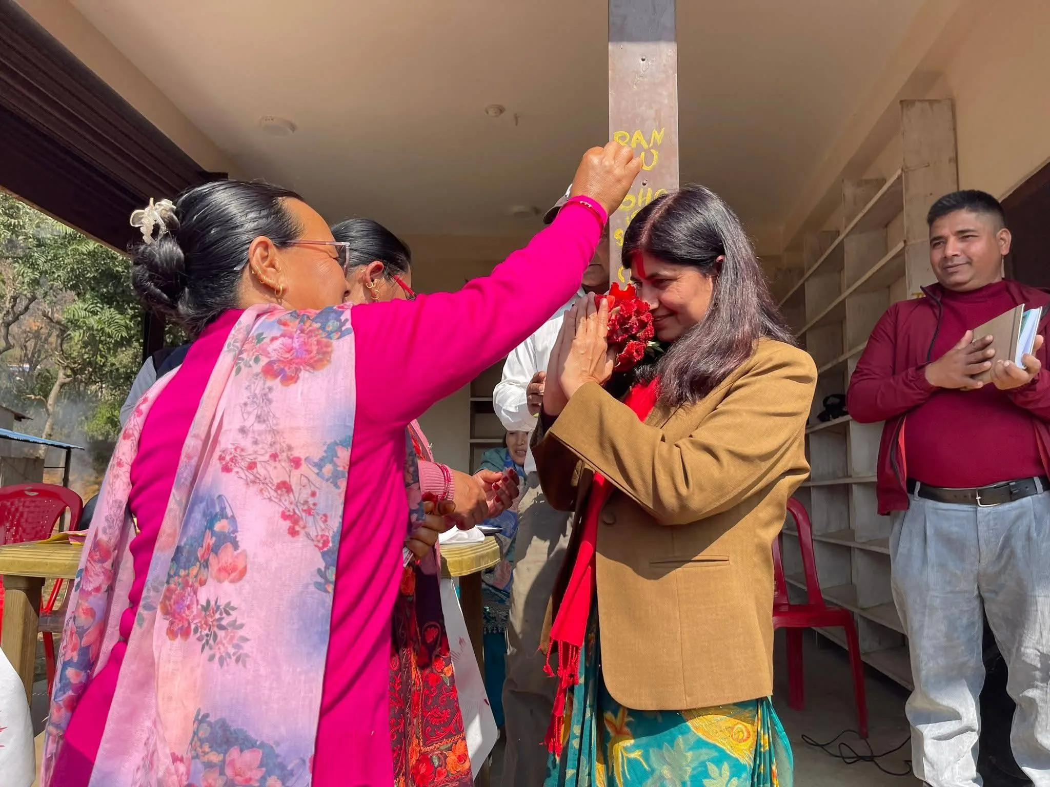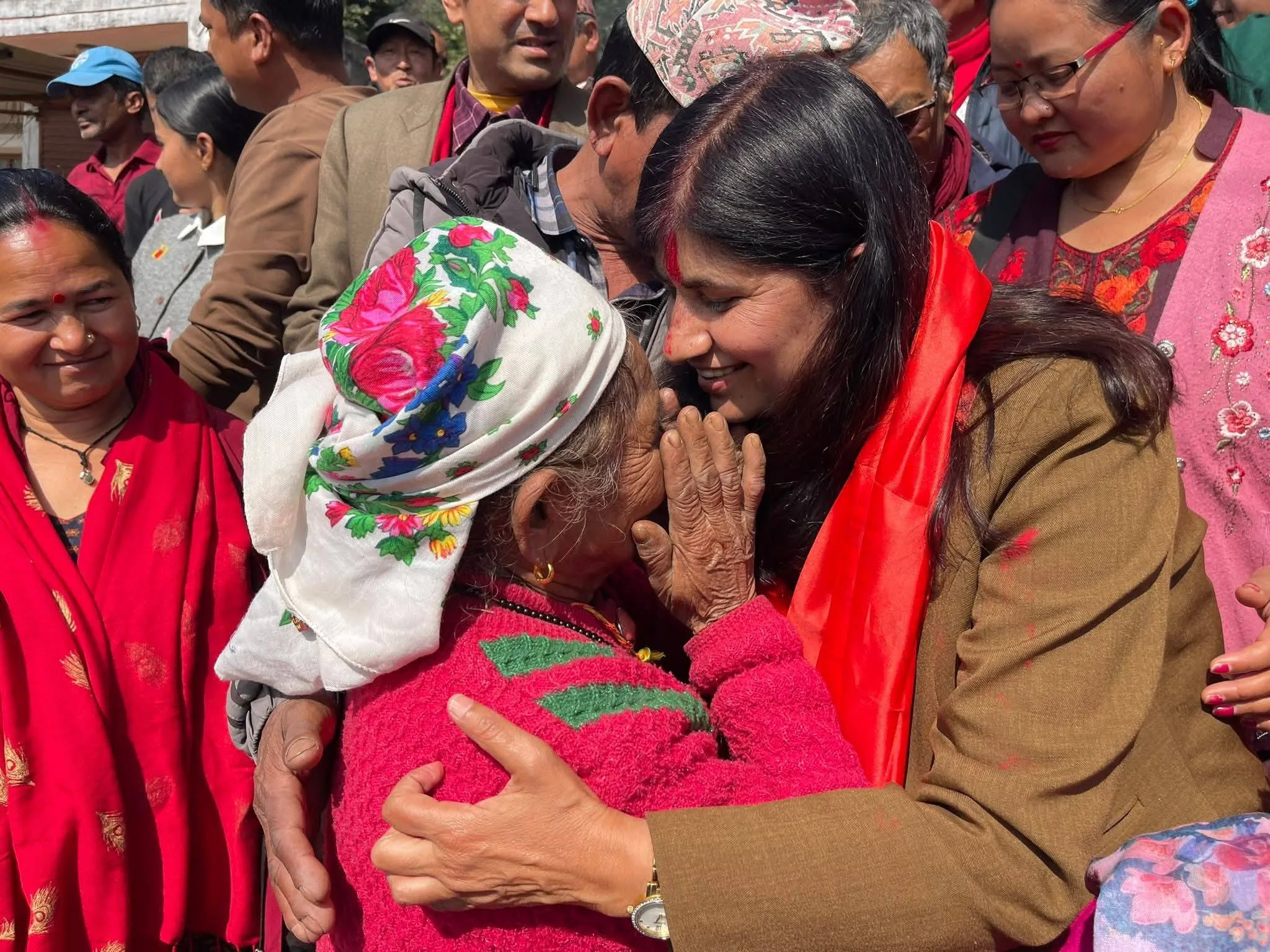 एमाले उम्मेदवार न्यौपानेले विहिबार बिहान आबुँखैरेनी गाउँपालिका वडा नम्बर २ को विभिन्न स्थानमा घरदैलो गरि मतदातालाई भेट गरेकी थिइन् ।