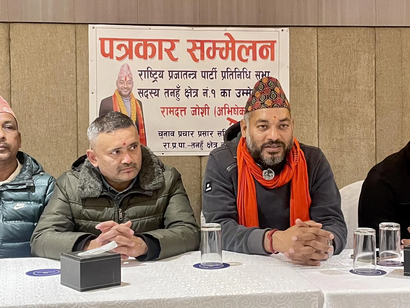 राष्ट्रिय प्रजातन्त्र पार्टी तनहुँ क्षेत्र नम्बर १ का उम्मेदवार रामदत्त (अभिषेक) जोशीले तनहुँ देवभुमी भएको हुँदा उक्त देवभुमीलाई विश्वमाझ पु¥याउन आफु चुनावी मैदानमा आएको बताएका छन् । राप्रपाद्वारा सोमबार दमौलीमा आयोजित पत्रकार सम्मेलनमा बोल्दै जोशीले देवताहरुको जमघट हुने स्थान देवघाट, महर्षी वेदव्यासको जन्मस्थल दमौली, व्यासकी आमा छाब्दी बाराही लगायत महत्वपुर्ण भुमीको प्रचार प्रसार र यस क्षेत्रको महत्वलाई विश्वमाझ चिनाई धर्म संस्कृतीको माध्यमबाट समृद्ध बनाउने आफ्नो उद्देश्य रहेको बताए ।