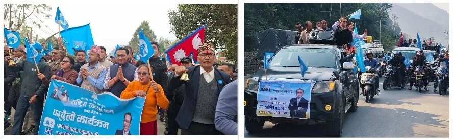 यसैविच राष्ट्रिय स्वतन्त्र पार्टीले सोमबार दमौली र आबुँखैरेनीमा र्याली निकालेका छन् । दमौलीमा बिहान र आबुँखैरेनीमा दिउँसो चुनावी र्याली निकालेका हुन् । उम्मेदवार डा.स्वर्णिम वाग्ले सहित रास्वपा कार्यकर्ताले चुनावी र्याली निकालेका हुन् ।