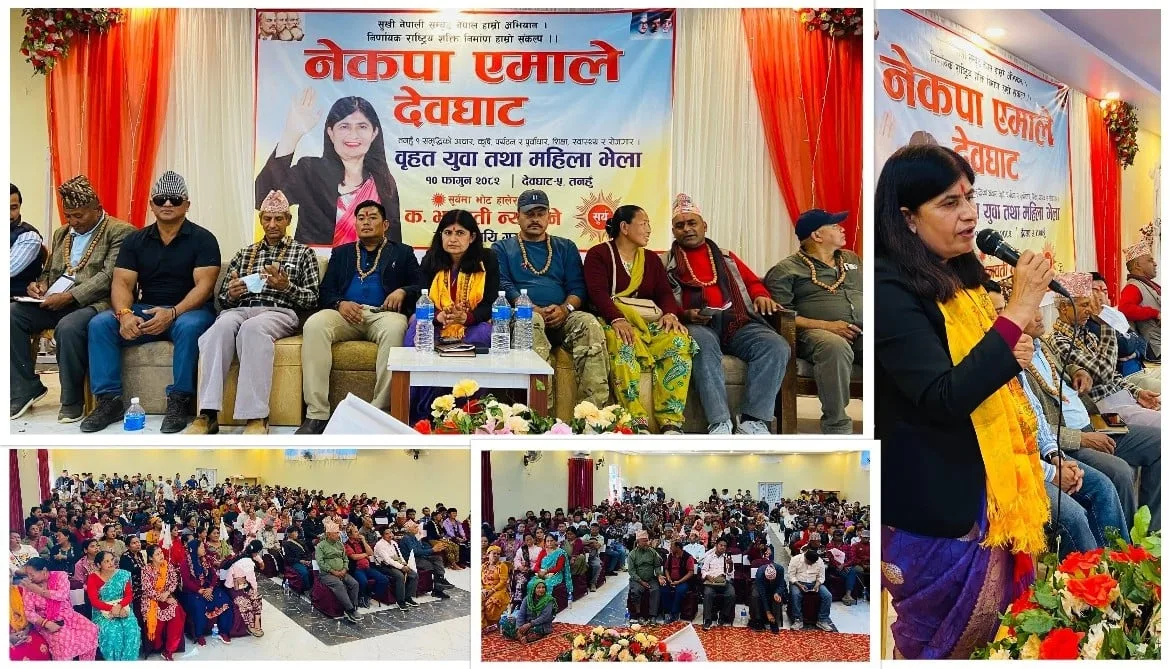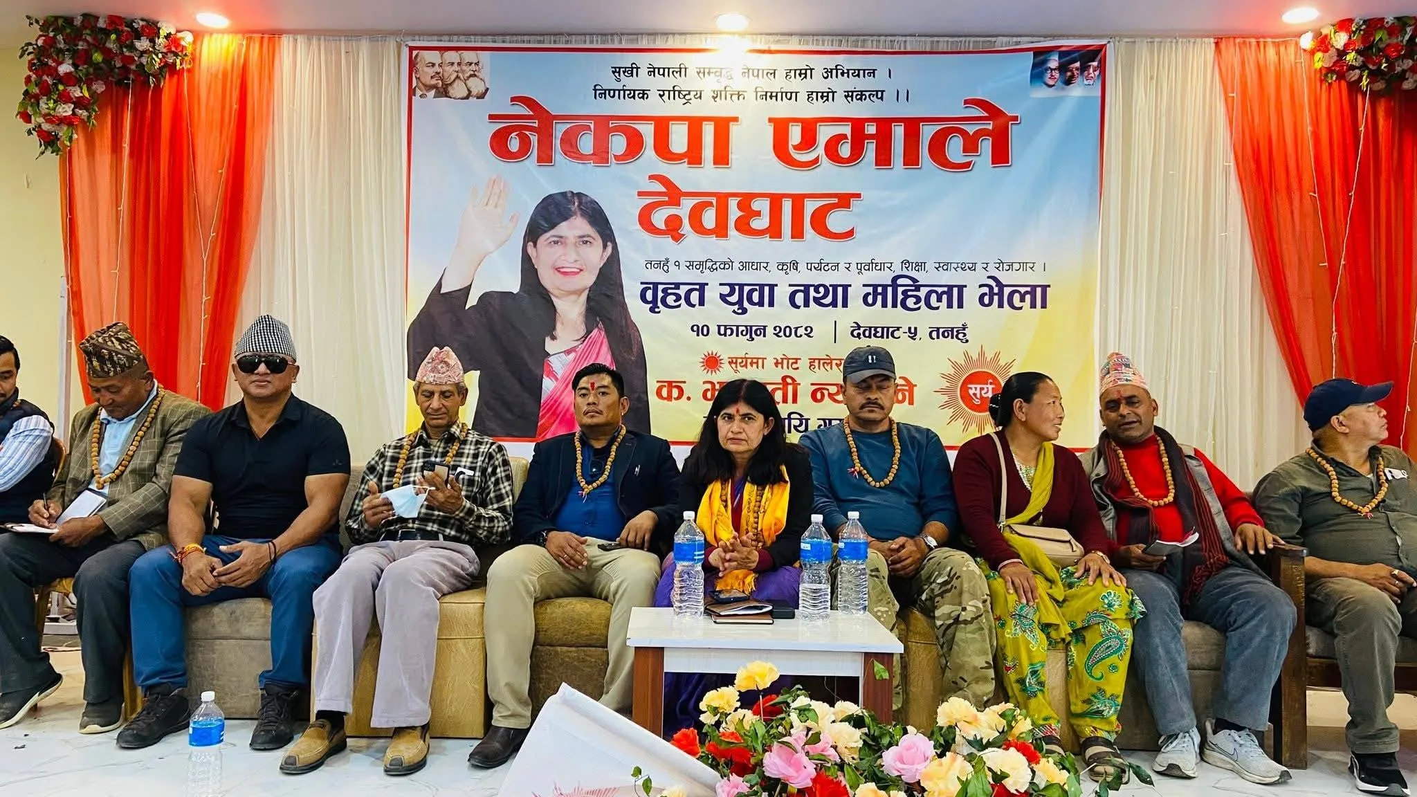 देवघाट गाउँपालिकामा आइतबार नेकपा एमालेको बृहत युवा तथा महिला भेला सम्पन्न भएको छ । उक्त भेलालाई नेकपा एमालेकी केन्द्रीय सदस्य एवं तनहुँ क्षेत्र नम्बर १ की उम्मेदवार भगवती न्यौपानेले सम्बोधन गरिन् ।
