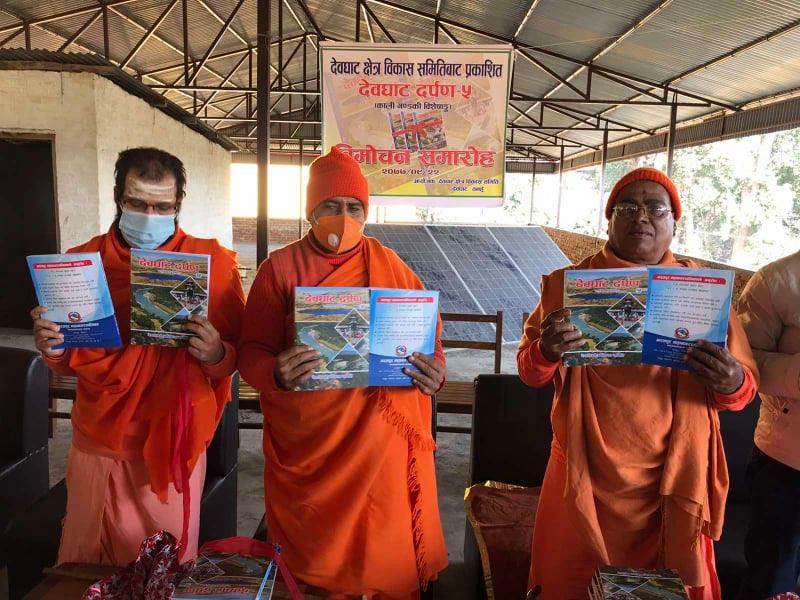 देवघाट क्षेत्र विकास समितिले प्रकाशन गरेको देवघाट दर्पण–५ बुधबार विमोचन गरिएको छ । क्षेत्र विकास समितिको कार्यालयमा आयोजित कार्यक्रममा देवघाट क्षेत्रमा रहेको गलेश्वर आश्रम पिठाधिस आत्मानन्द गिरी, महेस सन्यास आश्रम पिठाधिस पिठाधिस रमणानन्द गिरी र हरिहर सन्यास आश्रम ज्ञानानन्द सरस्वतीले संयुक्तरुपमा विमोचन गरे ।